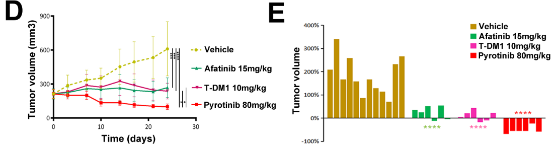 吡咯替尼在动物实验中显示出优于其他药物的抗肿瘤活性。