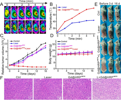 图3:基于酶活性的Gd@HRPABTS 探针体内肿瘤特异性光热治疗研究