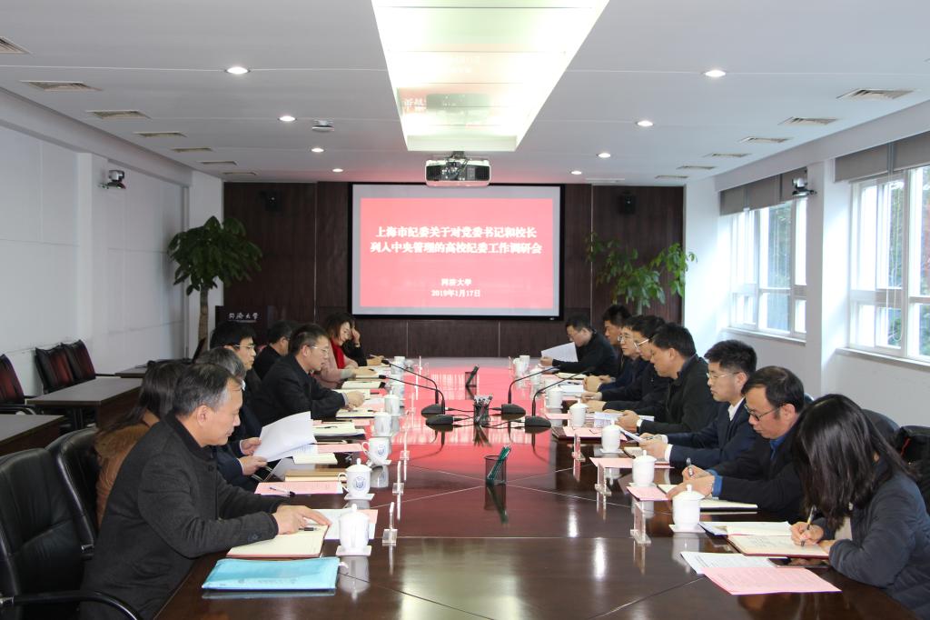 为贯彻落实中央纪委国家监委派驻机构改革的意见以及中央纪委关于党委书记和校长列入中央管理的高校纪检体制改革推进会精神,1月17日下午,上海市纪委副书记、监委副主任戴骅一行来校调研。校党委副书记、纪委书记方平、校纪委委员及相关部门负责同志参加了会议。
