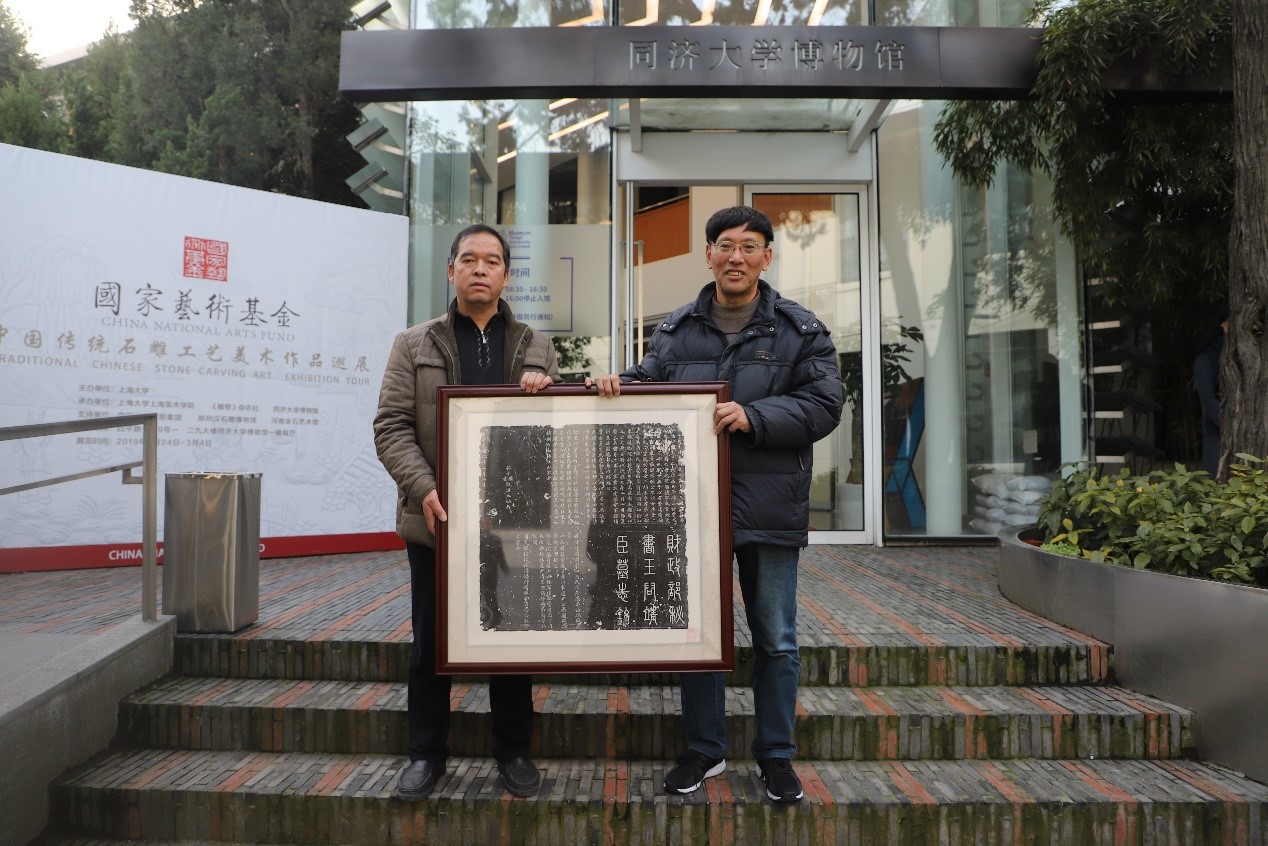 上海大学党委副书记段勇、“雕塑”杂志社主编范海民、陕西西安古代石刻艺术研究会会长张强和项目负责人与策展人孙海垠分别在开幕式上致辞。开幕式结束后,郑州汉石雕博物馆的工作人员向观众展示了精湛的石雕拓印技术,郑州汉石雕博物馆向同济大学博物馆捐赠了“汉代白泽金拓拓本”和“孙文书丹王靖臣幕志铭拓片”各一套。