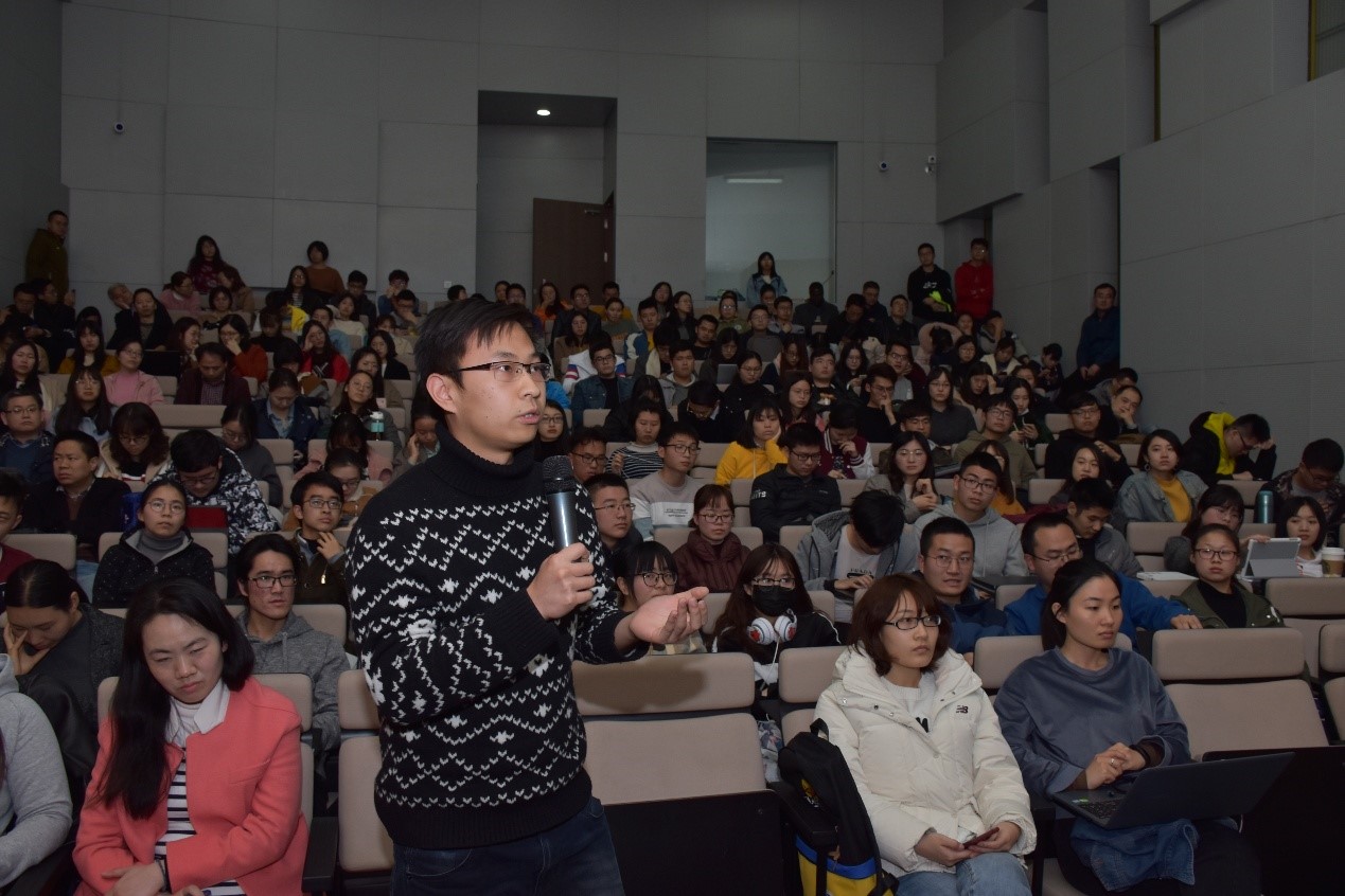 宋允孚接受了现场同学的提问,关于国际组织人才的选拔和考核,他指出,同学们应进一步加深对国际组织工作理念的了解,在选拔中展现合乎国际组织要求的素质,全方面发展专业和语言的学习。