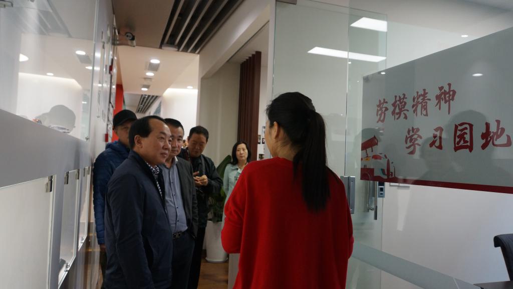 崔家周一行参观了劳模创新工作室。姚启明分享了劳模创新工作室的创建历程、理念传承、日常管理制度以及工作运行机制等。她谈到,在劳模工作室的创建过程中,她个人也完成了从懵懂的普通设计师到具备劳模精神的科技工作者的转变。劳模精神最重要的内涵是传承和发扬,要将劳动精神、劳模精神、创新精神融入到日常生活、学习和工作中。她希望通过自身的努力,将劳模精神影响到更多的人,带动大家一起传播积极向上、奋发有为的正能量。