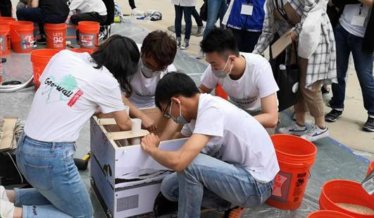 负责土力学项目的同学积极探索,将PLAXIS 3D,拓扑优化软件完美应用于本次比赛。针对赛题新出现的“动荷载”,他们提出了基于能量法的解决思路,结合大量实验不断优化挡墙设计。在现场施工与加载的环节,一名队员进行整体把控,一名队员进行细节修整,两名队员填沙造墙,整个建造过程有条不紊。