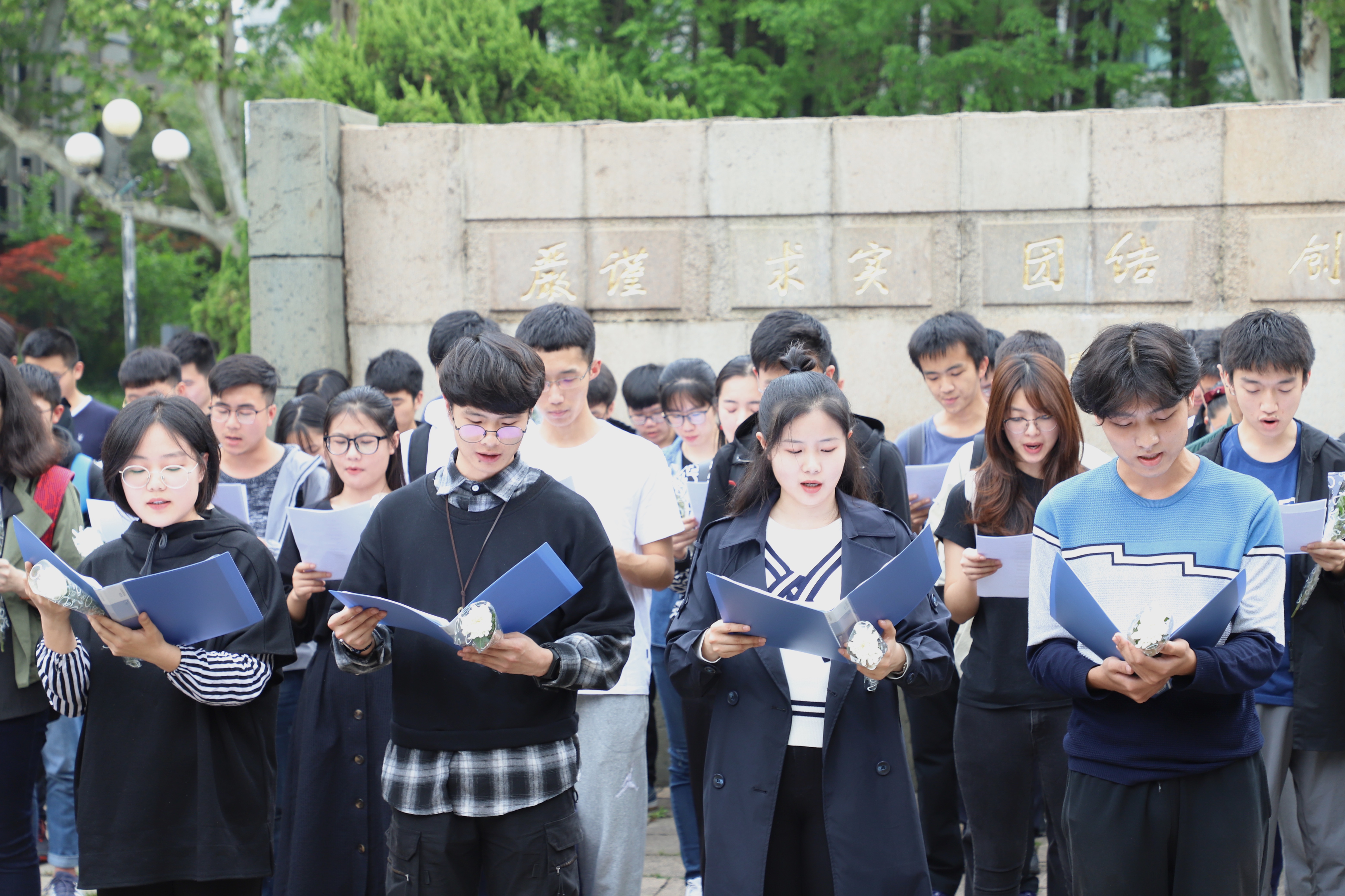 “殷夫班”全体学员、全体入团积极分子齐聚一·二九纪念园,集体朗诵殷夫诗歌,集体默哀,缅怀革命英烈。