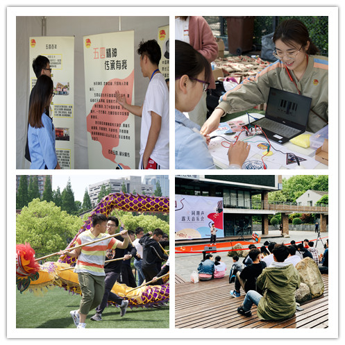 当天下午,校院两级学生会、主要学生社团在人工草坪集中设展。25个特色展台集中呈现了五四精神、我校历史、杰出校友、家国命运、未来展望等内容。“同期声”露天音乐会由学生会文艺部策划,已连续举办15届。本次特地邀请毕业多年的“自觉人”与历届十大歌手用歌声回忆人生重要故事、分享人生经历、珍惜校园生活。