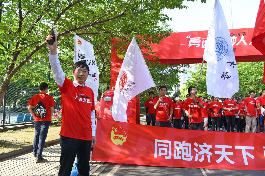 为号召我校学生“走下网络、走出宿舍、走向操场”,强健体魄,“同跑济天下”活动首次面向在校学生开放,师生、校友共计200人参与本次跑步活动。值得一提的是,共计5.4公里的跑步路线,专门设置了“三全卡”环节,选手需要集齐“全员育人”卡、“全程育人”卡、“全方位育人”卡后,才能获得“追梦人”奖牌,旨在通过形式丰富的活动让参与活动的师生进一步了解“三全育人”改革方案,激励学生勇做德智体美劳全面发展的社会主义建设者和接班人,勇担民族复兴的时代重任。