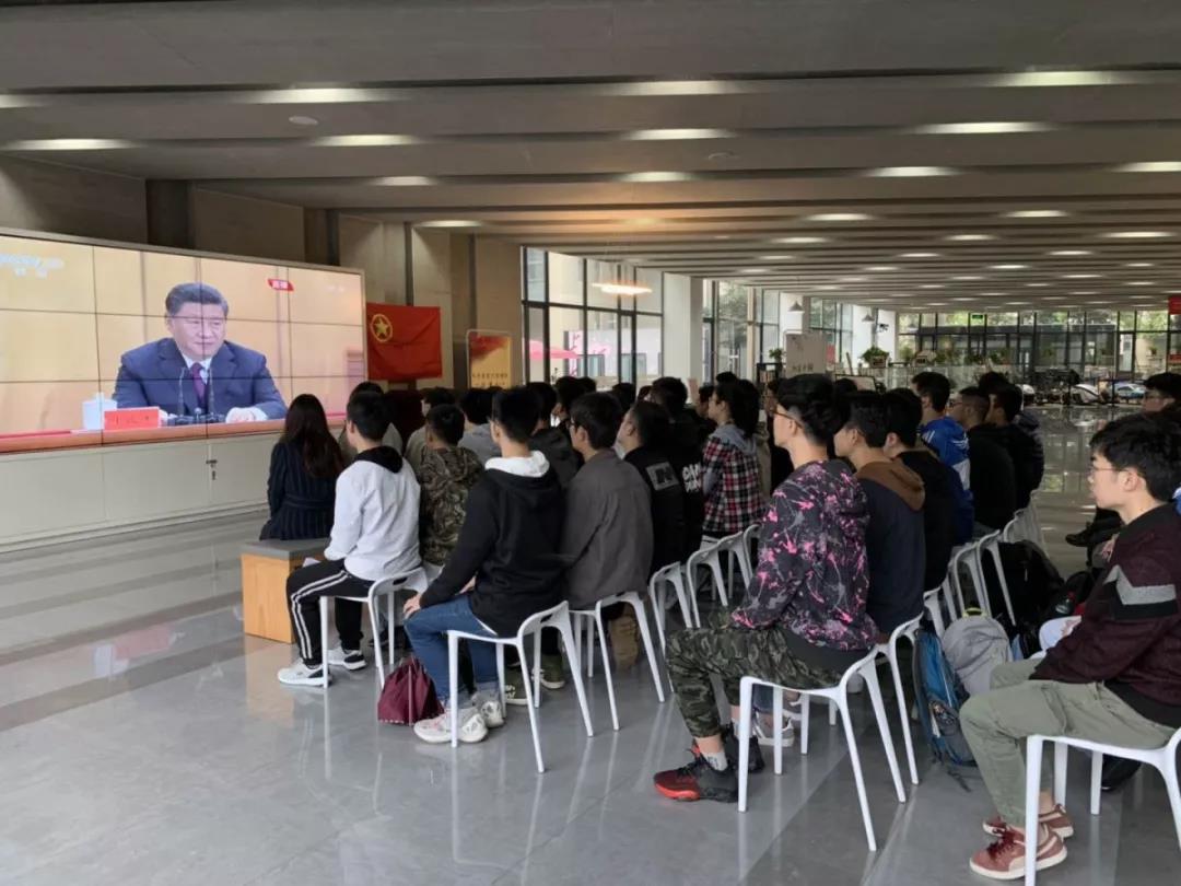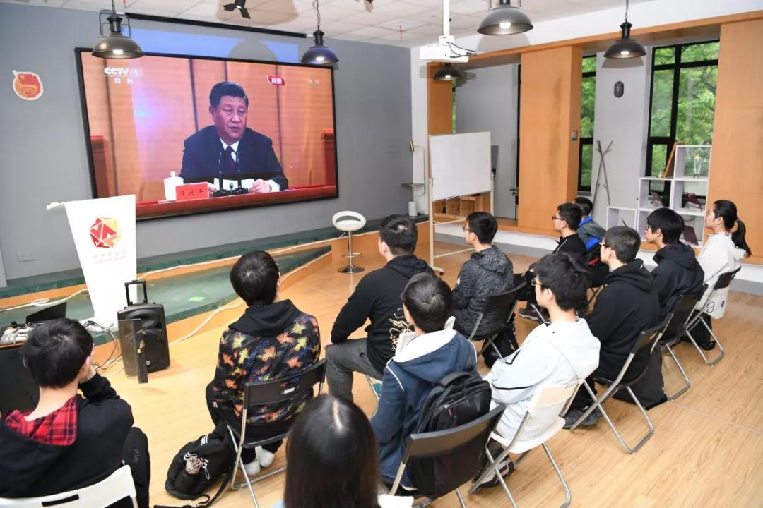 纪念五四运动100周年大会4月30日上午在北京人民大会堂隆重举行,中共中央总书记、国家主席、中央军委主席习近平出席大会并发表重要讲话,高度评价了五四运动的历史意义,明确提出了新时代发扬五四精神的重要要求,深情寄语当代青年。我校领导班子、党政中层干部正职齐聚中法中心报告厅,集中收看了大会直播。学校教师工作部组织了近百名青年教师代表(包含专任教师、辅导员、教辅人员和管理人员等)分别在四平路校区教师发展中心活动基地和嘉定校区集中收看大会直播。30多个学院也各自组织了本学院学生及青年教师代表收看大会直播。