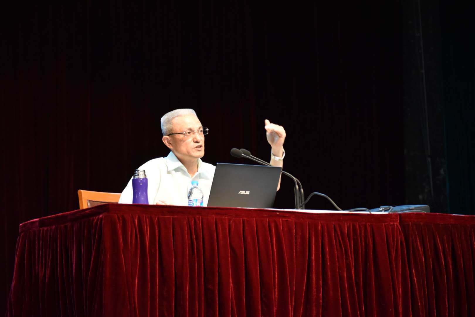石建勋老师在大礼堂为学生讲授《形势政策》课