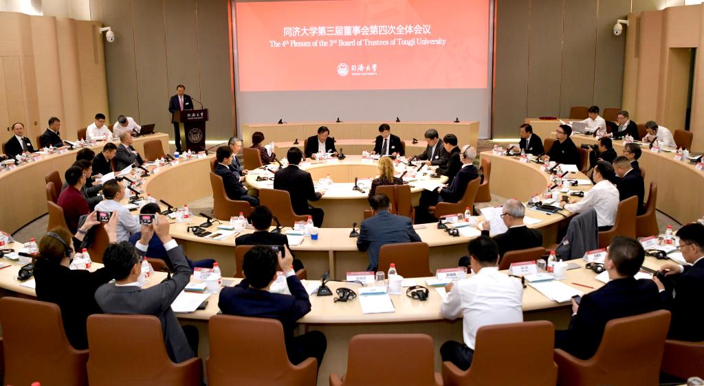 5月18日下午,同济大学第三届董事会第四次全体会议在四平路校区召开。校董事会主席、党委书记方守恩,终身董事万钢、吴启迪、周家伦、裴钢,校董事会副主席、原副校长葛均波,原校长钟志华,校长陈杰以及来自学术界、企业界等领域的其他董事、董事代表共40名出席会议。会议由校董事会秘书长、副校长雷星晖主持。校领导伍江、江波、吴志强、吕培明、徐建平、吴广明、方平、冯身洪、陈义汉、余卓平以及学校相关职能部处负责人列席会议。