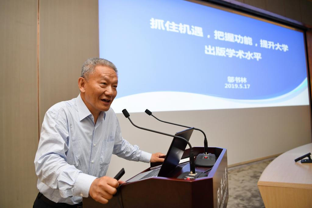 会上,邬书林作了《抓住机遇 把握功能 提升大学出版学术水平》的专题报告。他谈到,当前我国大学出版发展正面临良好的机遇,一是党中央的高度重视,《加强和改进出版工作的意见》《关于深化改革建设世界一流期刊强国的意见》等文件的颁布,为出版事业进一步指明了发展方向,要把大学出版放到大学“双一流”建设的大目标下考虑,放到中华民族伟大复兴的格局下考虑,在中国未来的发展中找到出版的着力点;二是我国科研成果的快速增长提供了丰富的内容资源,包括人员队伍的扩大、研发投入的增长、高水平论文、专利产出等方面;三是经过40年的快速发展,我国大学出版社打下了坚实基础、良好条件,今后要有更高站位的战略定位;四是现在大学办企业的政策调整为大学出版的整合和发展提供空间和条件;五是中华民族伟大复兴的历史任务提供了历史机遇和宽广舞台。