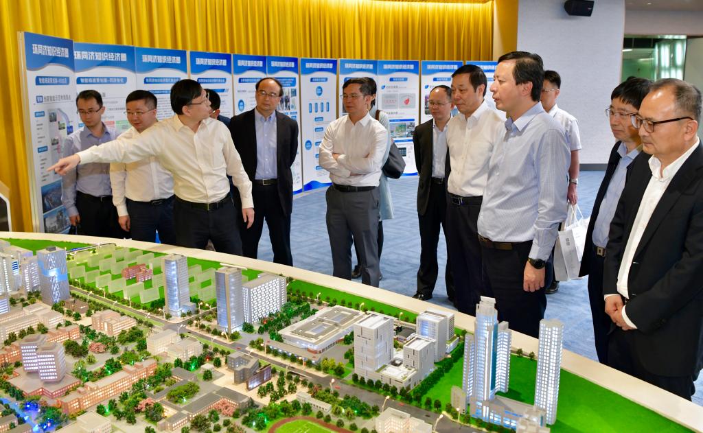 在校党委书记方守恩、校长陈杰的陪同下,杨贤金一行先来到四平路校区东区,在建筑设计研究院参观了“环同济知识经济圈”的发展情况的展览,听取了同济大学建筑设计集团的介绍,在设计创意学院参观了设计工场和MIT实验室,并听取了学院负责人关于学院和设计学科发展情况的介绍。杨贤金一行还参观了设在一·二九大楼的学生创新创业基地“创业谷”。随后召开了福建省人民政府-同济大学文创工作座谈会。
