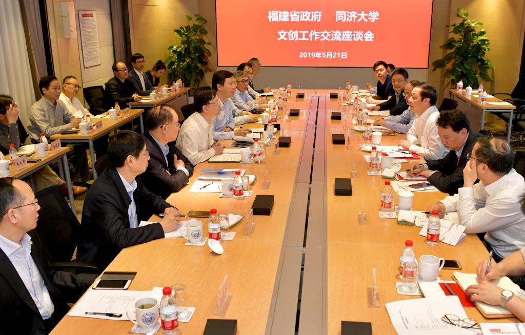 座谈会上,副校长江波介绍了同济文创发展的整体情况,文科办公室、设计创意学院、建筑与城市规划学院、人文学院负责人分别介绍了文创发展的做法。石建平、刘志坚分别就福建文创工作的需求和与同济开展合作的设想作了发言。