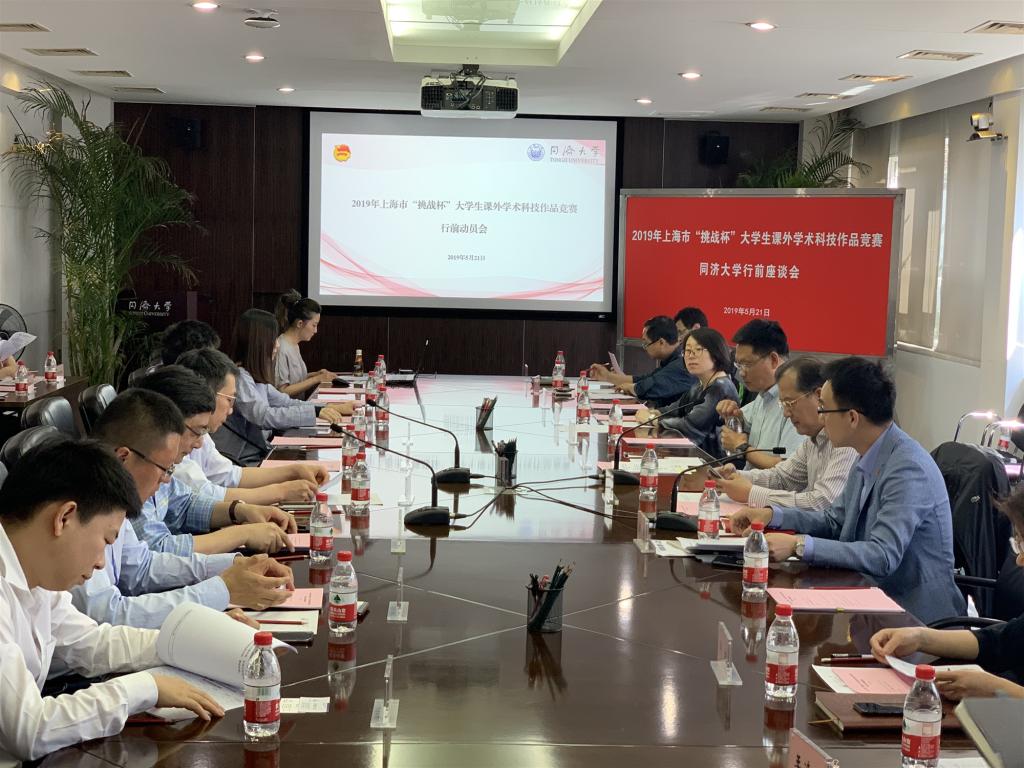 5月21日下午,2019年上海市“挑战杯”大学生课外科技作品竞赛行前动员会在逸夫楼一楼举行。副校长雷星晖、创新创业学院副院长周斌、各参赛作品指导教师、所在学院相关领导和作品创作者参与本次会议。会议由校团委书记陈城主持。