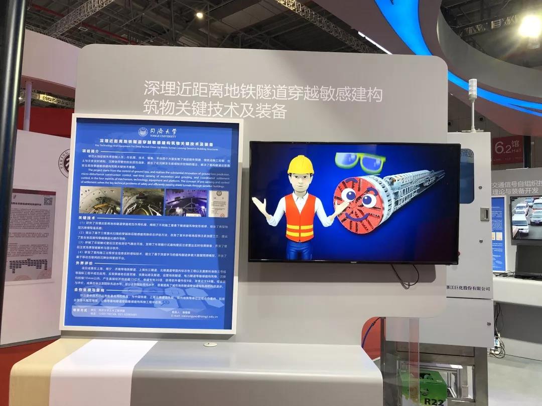 据介绍,高校展区优秀展品奖特等奖获奖项目“深埋近距离地铁隧道穿越敏感建构筑物关键技术及装备”,源自上海市建委科研项目:“深埋近距离重叠地铁隧道穿越切割桩基设计与施工研究(JS-KY11R016)”,并在国家自然科学基金、上海市科委重点项目、广西科技厅等基金支持下不断发展。项目成果已经推广应用于上海长江隧道、北横通道、广深港高铁狮子洋隧道等壁后注浆实时检测;沿江通道、上海延安东路隧道状态评估;临近开挖对电力隧道的影响,云南武易高速丰收水库隧道、楚姚高速老虎箐、大坡隧道等沉降控制。项目成果被1家参与单位推广到莫斯科地铁3号线工程,相关应用单位共产生直接经济效益约5.7个亿。