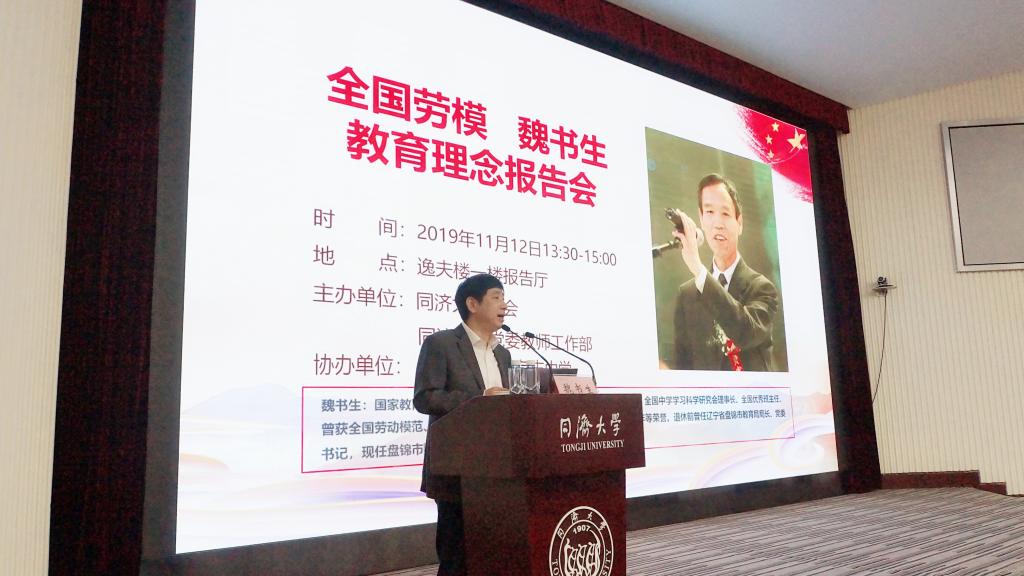 为打造高素质的教师队伍,由同济大学工会、党委教师工作部主办,同济附属存志中学协办,邀请当代著名教育改革家、全国劳动模范、首届中国十大杰出青年魏书生,为同济大学教职工和附属中小学作关于魏书生教育理念专题报告。