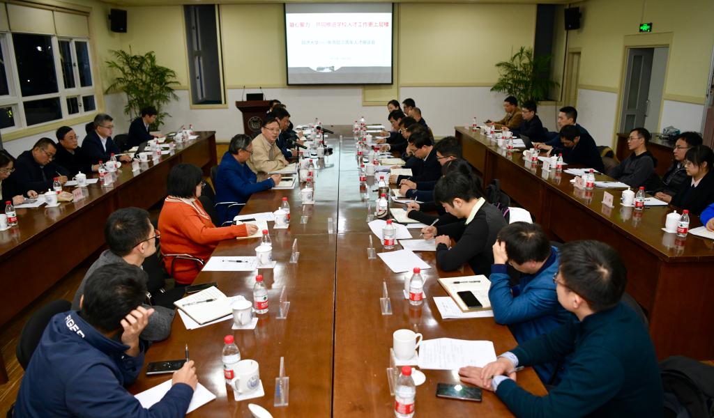 11月27日,主题为“凝心聚力,共同推进学校人才工作更上层楼”的同济大学2019年高层次青年人才座谈会在四平路校区举行。校党委书记方守恩、校长陈杰、常务副校长伍江、副校长江波及有关部门负责人,与来自全校各学院今年新入选的长江学者、杰出青年基金获得者、青年长江学者、国家优秀青年科学基金获得者等20位高层次青年人才代表座谈。座谈会由副校长吕培明主持。