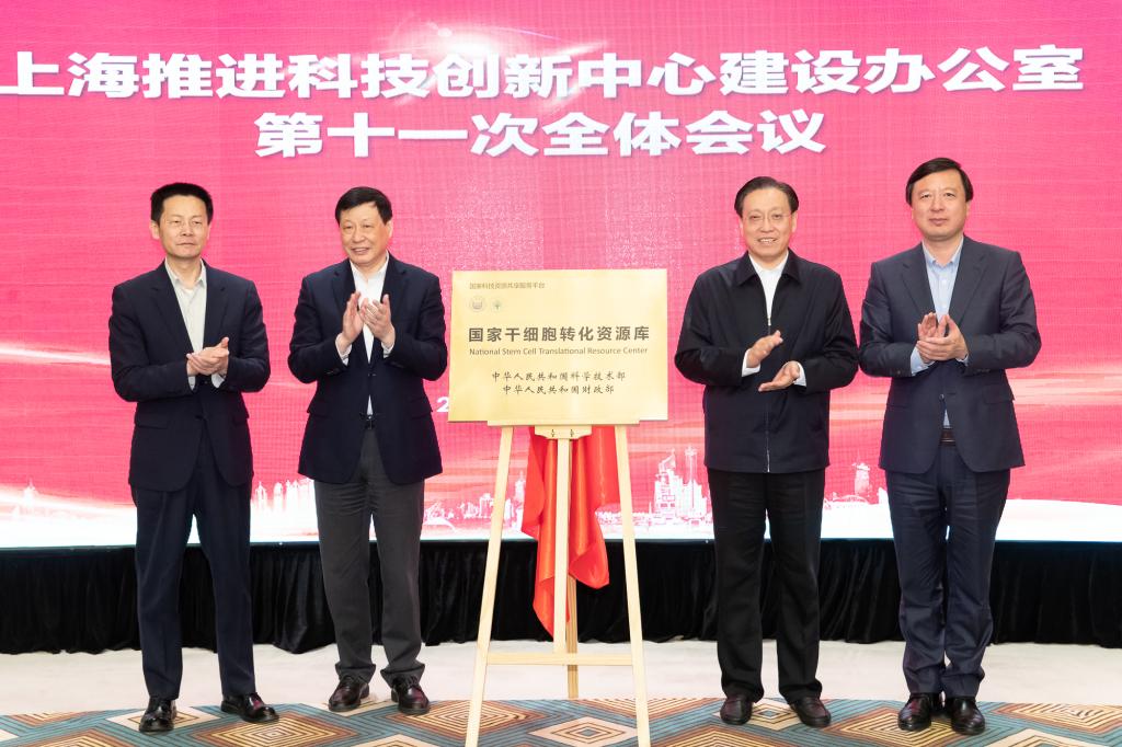 会上,上海市市长应勇、国家发展改革委副主任林念修、上海市副市长吴清与同济大学校长陈杰共同为国家干细胞转化资源库揭牌,该资源库依托同济大学建设。