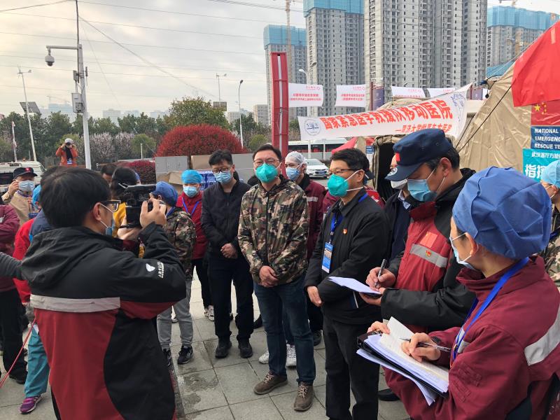 2月4日,受国家卫生健康委派遣,附属东方医院国家紧急医学救援队整建制55人分两路奔赴武汉疫区,受命驻扎在东西湖区(武汉客厅)方舱医院。2月5日下午,该队仅用3个多小时即搭建完毕25顶帐篷,完成了中等规模移动医院的展开。