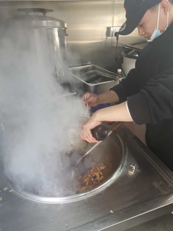 姜波说,后勤的战友们每天看着队里的医护战友们进出方舱,我们当然为他们骄傲。这种自豪感更加激发了我们站在后面,勤快做事的动力,医护战友们深更半夜、凄风苦雨中出了方舱,肯定不能让他(她)们再受冻挨饿,所以车早早等在舱外、车上备好军大衣、零食,不就是平平常常、琐碎细小的分内事嘛!姜波所说的小事,还包括值班(包括帐篷值班、等候医护人员下班等等)、检查帐篷是否漏气,负责医护早中晚三餐,接受物资并发放,炊事车上的烹饪,杜大厨经常上演的“美食风暴”等等。