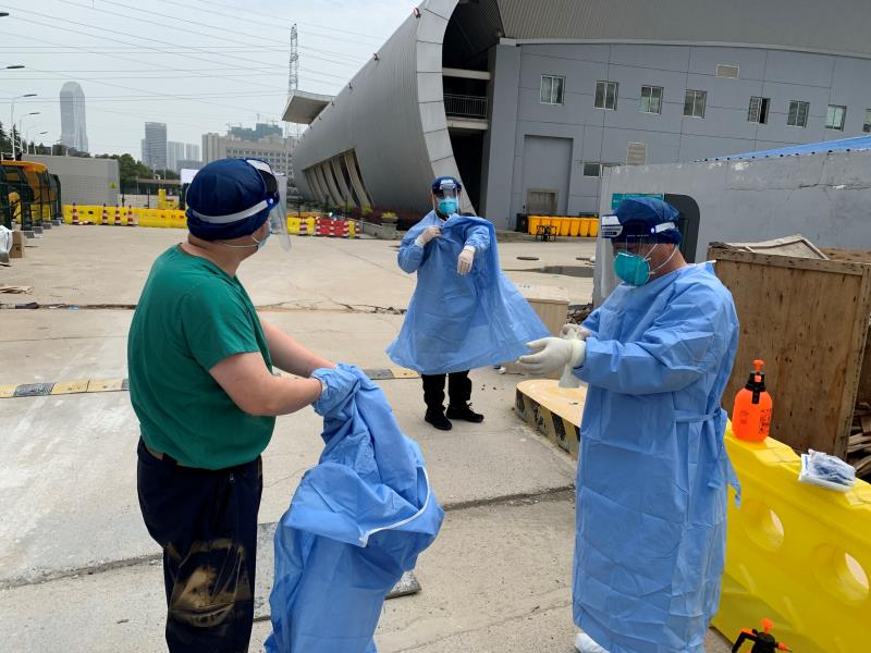 去之前,我跟随雷撼院长、孙贵新执行队长和院感专家吴文娟一起,到东西湖方舱医院的患者出口通道踩点:那是一条长度200米开外,三面都有棚材维护的狭长甬道,长度近10米、宽度超过2.5米、高度接近4米的重型载货专项作业车,要从这样的甬道里通过,必须横平竖直,走“一字马”,否则后果很严重。踩点的结果,大家一致认为:必须一人开车,一人引导。