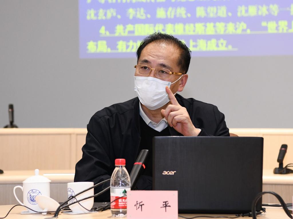 4月21日,校党委理论学习中心组在四平路校区举行专题学习会,邀请上海市社会科学家联盟副主席、上海市中共党史学会会长忻平教授,作题为《认真学习四史,牢记初心使命——学习党史、新中国史、改革开放史和社会主义发展史》的专题辅导报告。陈杰等在校党政领导班子成员、党委常委、校长助理、两委委员和机关职能部处正职干部在会场参加了集中学习,各基层单位党政正副职干部、机关职能部处副职干部以及全校科级干部通过Zoom平台在线聆听了学习报告。学习会由校党委副书记吴广明主持。