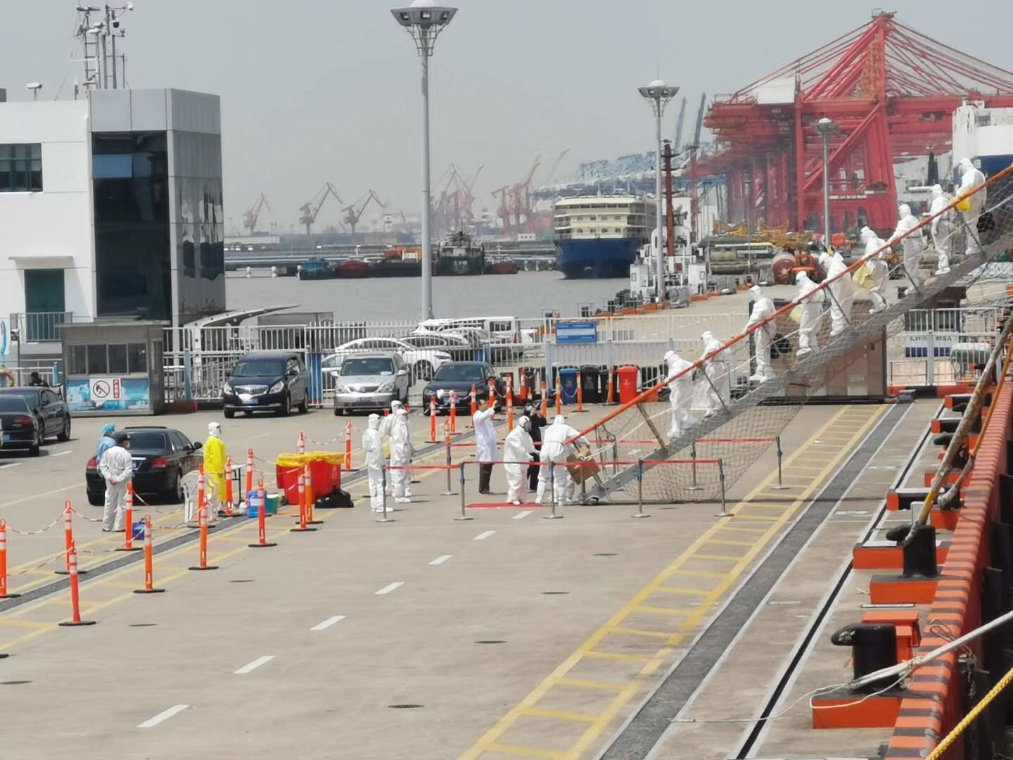 4月22日上午10点,船甫靠岸,东方医院精心挑选的5名技术骨干,在中国极地考察健康保障专家组组长,东方医院院长刘中民教授的带领下,先后登上两条雪龙船,开展新冠核酸检测的标本采集。得益于上海海关的精心准备,186份标本不到4小时就采集完毕。