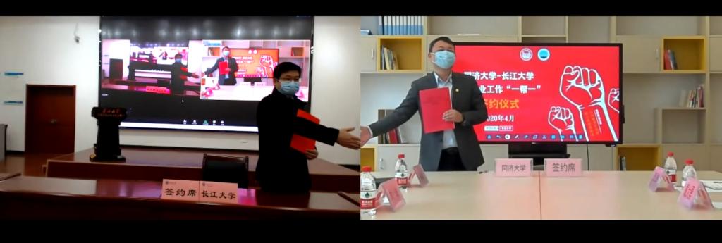 自教育部启动实施全国高校与湖北高校毕业生就业创业工作“一帮一”行动以来,同济大学立即响应,于4月14日举行两校联合就业工作视频会议;4月17日,“同济就业”微信公众号开辟“一帮一”专栏。4月23日上午,同济大学与长江大学通过视频会议的形式,举行两校毕业生就业创业工作“一帮一”行动合作签约仪式。两校将在共享就业岗位信息、共同开拓就业渠道、共同加强就业指导、共用优质教学资源、共同开展创业实践活动、共同提高管理水平和共享就业创业服务等7个方面建立联动机制。围绕“共享资源、共办活动、定制帮扶”的工作思路,目前两校已共同举办2场空中招聘会、共享4场公益直播课和3场校级以上规模的招聘会资源,并定制了生涯教育与招聘活动菜单,供长江大学各年级学生分享与参与。