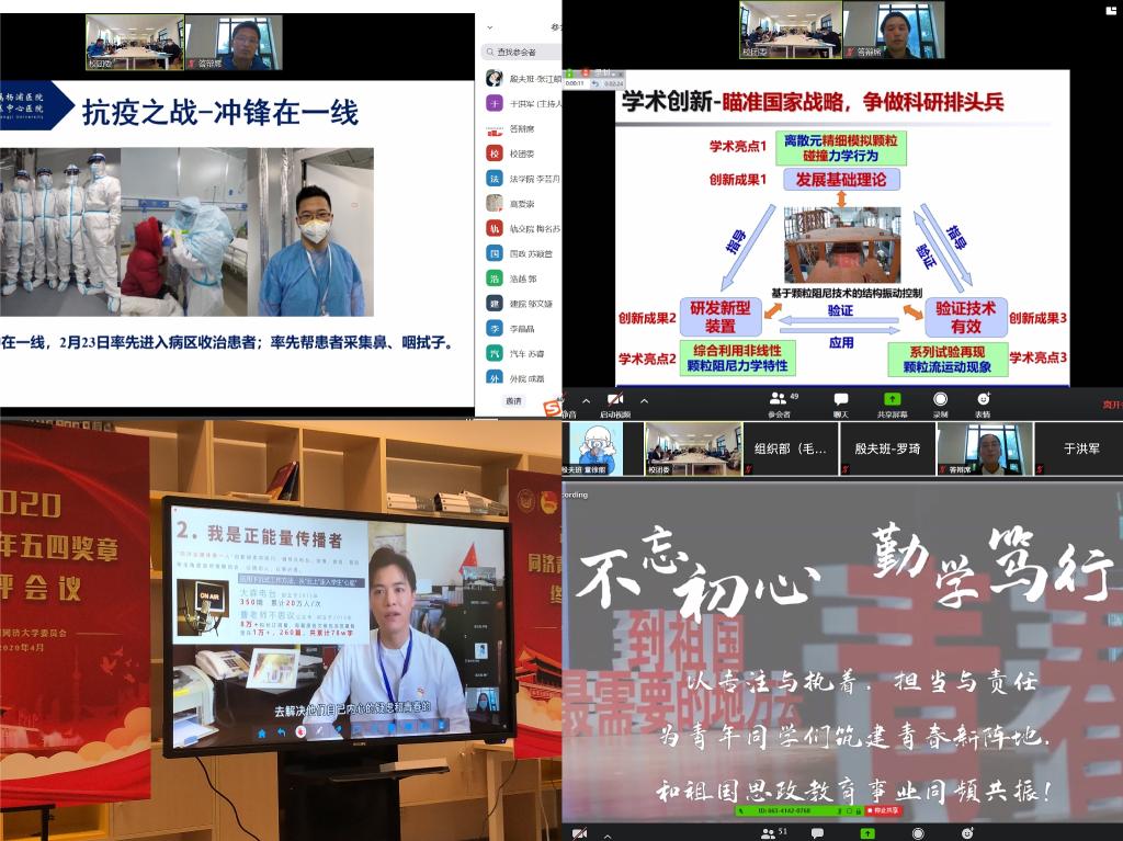 为表彰先进,大力宣传在各条线工作中做出突出贡献的青年典型,引导和激励我校广大青年锐意进取、开拓奉献,共青团同济大学委员会开展了“2020年同济青年五四奖章”评选活动。日前,“2020年同济青年五四奖章”终评会议暨“榜样在身边”主题教育活动在学业指导中心2号会议室和线上ZOOM会议室举行。校长助理、学研工部部长、新生院党委书记刘润,各相关职能部门负责人出席了本次活动。同济青年五四奖章评审委员会成员及第三届青马工程“殷夫班”学员通过线上线下的形式共同出席了本次活动。