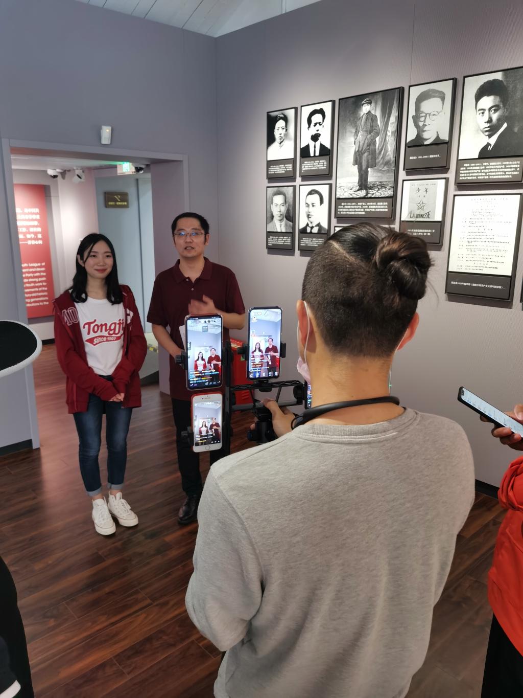 5月2日中午,同济大学疫情期间推出的移动直播栏目《听TA说》之“红色能量”第二讲《渔阳里精神与当代青年》,在新渔阳里6号团中央机关旧址纪念馆开讲,带领广大青年学子在线参观。在短短一个小时的直播时间内,共有14余万人次通过同济大学官方B站、抖音、快手、微博等平台在线收看了直播,并实时评论点赞。此栏目是同济大学策划开展的云端“四史”学习教育的最新尝试。