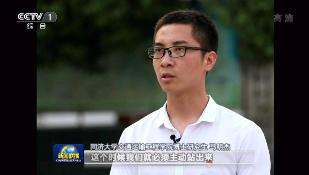 “这次‘疫’情,对于我们青年大学生来说是一次大考。这个时候我们必须主动站出来,与祖国共成长。”5月5日晚,透过央视新闻联播的镜头,同济大学交通运输工程学院博士研究生马明杰这样剖白自己的心迹。