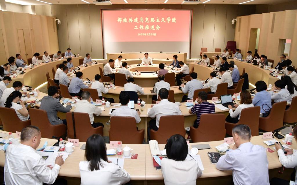 周慧琳在讲话中指出,推进部校共建马克思主义学院建设,是新时代贯彻落实习近平总书记和党中央一系列决策部署的客观需要,是新时代拓展新事业、构建新学术、培养新人才、创造新奇迹的迫切需要。在开展共建工作中,要集中资源、聚焦重点,共同深化习近平新时代中国特色社会主义思想的教学研究宣传,共同建强马克思主义理论学科,共同提高学生培养质量,共同推进师资队伍建设,在坚持中完善、创新中提高。要紧紧围绕做强共建马克思主义学院、带动全市马克思主义学院的共建目标,加强共建工作全过程、各环节的分析研究,不断优化机制和举措,强化谋划部署、强化资源整合、强化精准施策、强化作用发挥,激发新活力,推动共建工作常建常新。