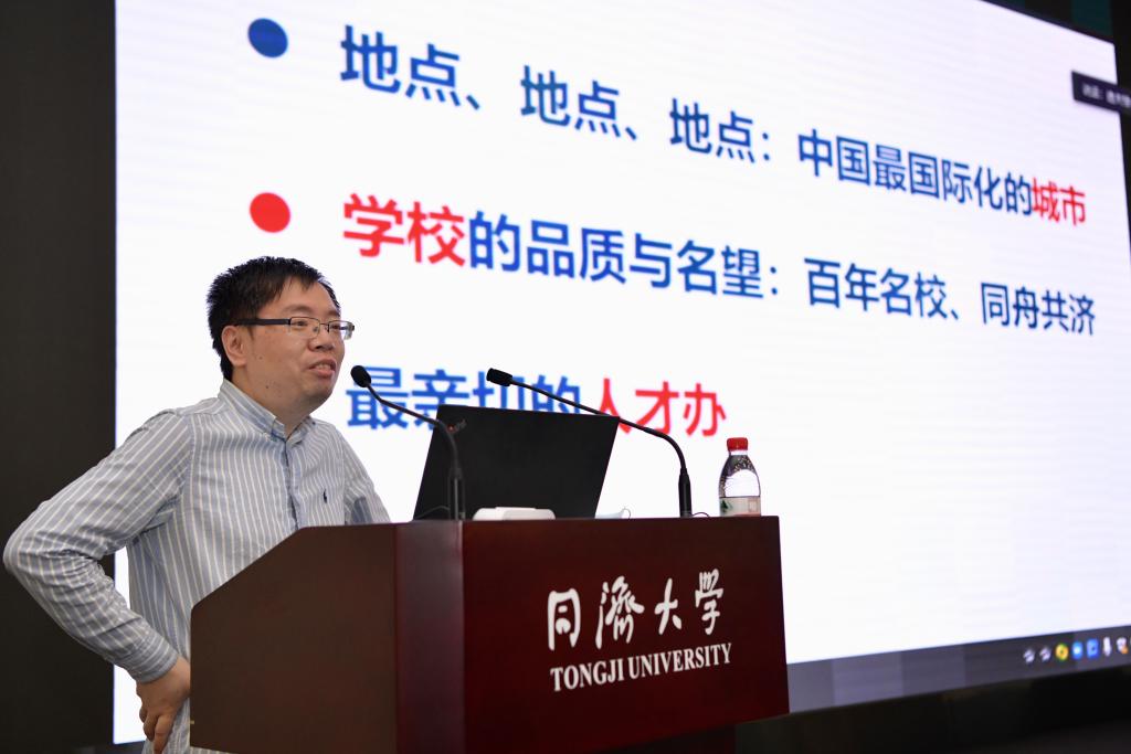陈杰以《逐梦前行,静待花开》为题,向参加论坛的海内外青年学者介绍了同济大学的总体情况及发展成就。他以一幅幅生动照片,讲述了建校113年来一代代同济人爱国奋斗、赤诚报国的故事,展现了学校一个个学院学科发挥自身优势和特色,为国家重大工程建设、经济社会发展贡献的同济智慧、同济力量。他表示,同济大学将为海内外青年人才提供施展才华的广阔舞台,学校热诚欢迎青年才俊,“同济天下,未来有你”。