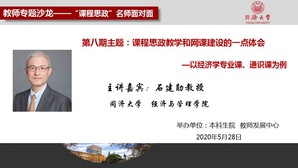 石建勋教授作客学校第八期课程思政教师专题沙龙,“云”端分享课程思政教学和网课建设的体会