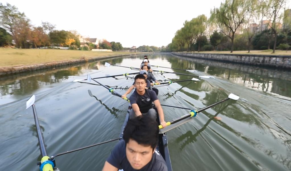 在112周年校庆宣传片中,同济赛艇作为嘉定校区一张亮丽的名片在各校区大屏幕上滚动播出,张轩铭和队员们欣慰地笑了。他把他们的故事记在了“同济大学世联行赛艇会”微信公众号里,让更多的人了解赛艇,认识同济。