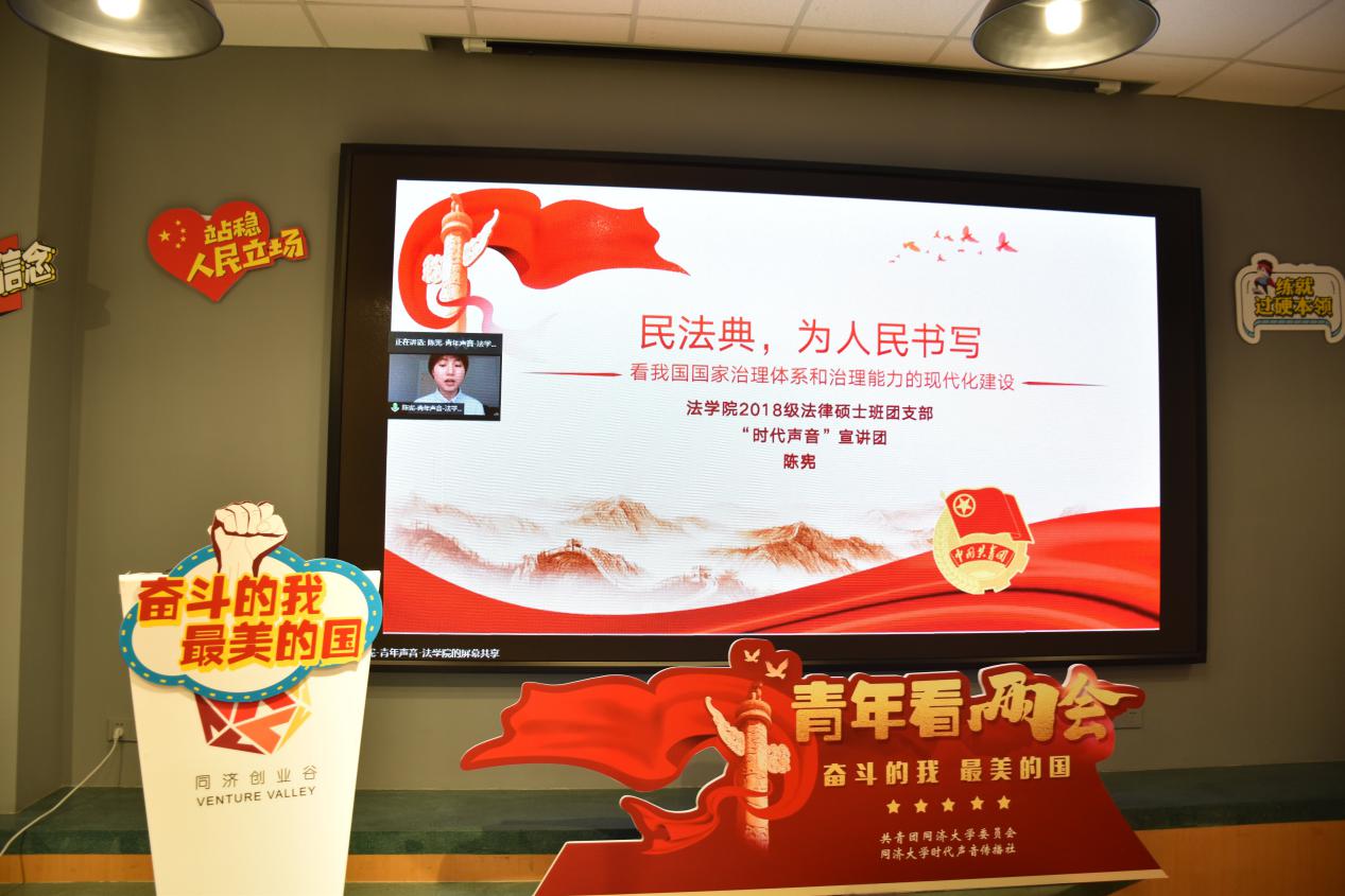 为深入推进爱国主义教育,进一步引导广大团员青年全面贯彻习近平新时代中国特色社会主义思想和全国“两会”精神,6月3日12:00,共青团同济大学委员会联合时代声音传播社在四平路校区创业谷梦想舞台开展了“奋斗的我 最美的国”同济大学“青年看两会”主题沙龙。活动在Bilibili平台进行了同步直播。