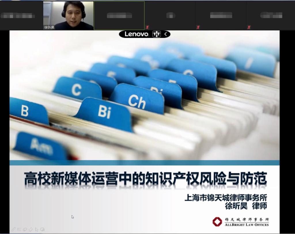 作为高校新媒体从业工作者,在新媒体运营工作中,或多或少都存在一些知识产权方面的困惑。为解答此类专业性较强的难题, 5月28日下午,由同济大学党委宣传部和图书馆联合主办的高校新媒体运营中的知识产权风险防范讲座在zoom线上会议室 “云”开讲。本次讲座特别邀请上海锦天城律师事务所徐昕昊律师,为广大新媒体工作者解读网络知识产权内容。