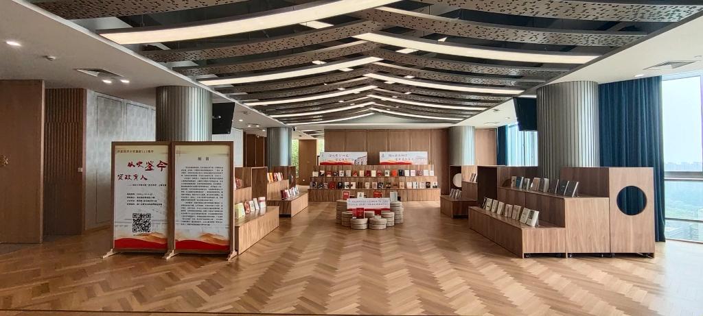 在同济大学嘉定校区图书馆十四楼文化空间,有一个特别开设的“四史阅读”展厅,摆放着从图书馆馆藏中精心挑选的一百四十余册“四史”相关书籍。这是同济大学图书馆联合嘉定校区党工委策划的“以史鉴今、资政育人——同济大学图书馆‘四史’专题书展”,助力师生学习“四史”。