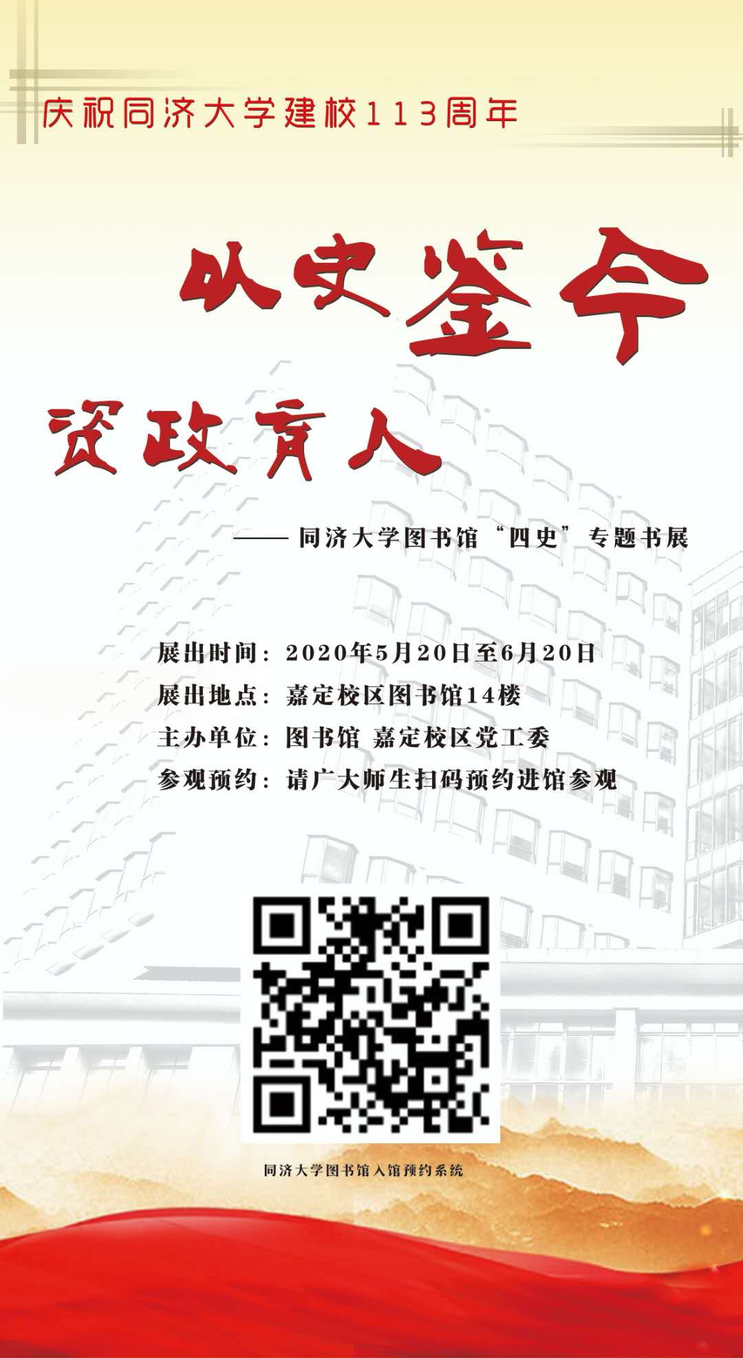 围绕“四史”学习教育,同济大学充分运用图书馆资源,特别推出“四史”专题书展,发挥纸本书和电子书的不同优势,将线下“四史”专题阅读空间的营造和线上“四史”电子书籍的推广相结合,保障师生“四史”学习资源的丰富性和便捷性。在开直播导读、创新“四史”图书阅读方式的同时,为使“四史”学习教育能够入脑入心,学校以“初心课堂”形式,开展“四史”读书会,创新学生党团组织活动,激励广大师生知史爱党、知史爱国,守初心、担使命。