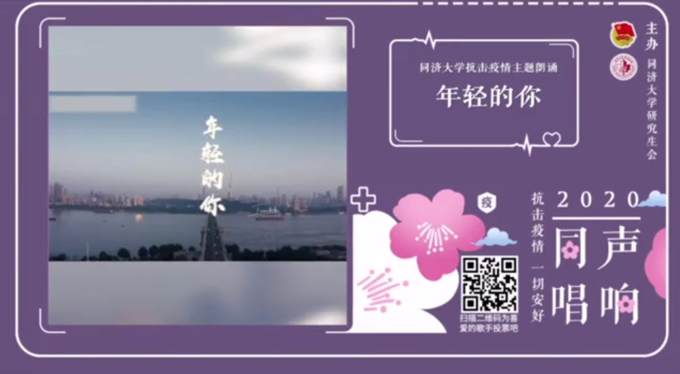 第一轮比赛后,选手们共同表演了同济大学抗击疫情主题朗诵《年轻的你》,向奋战在抗疫一线的英雄们的致敬。面对今年突然袭来的新冠疫情,同济人临危受命,勇挑重担,各附属医院紧急奔赴抗疫前线,学校各部门为同济师生的安全保驾护航,危难时刻,同济人与国家风雨相伴,同舟共济。