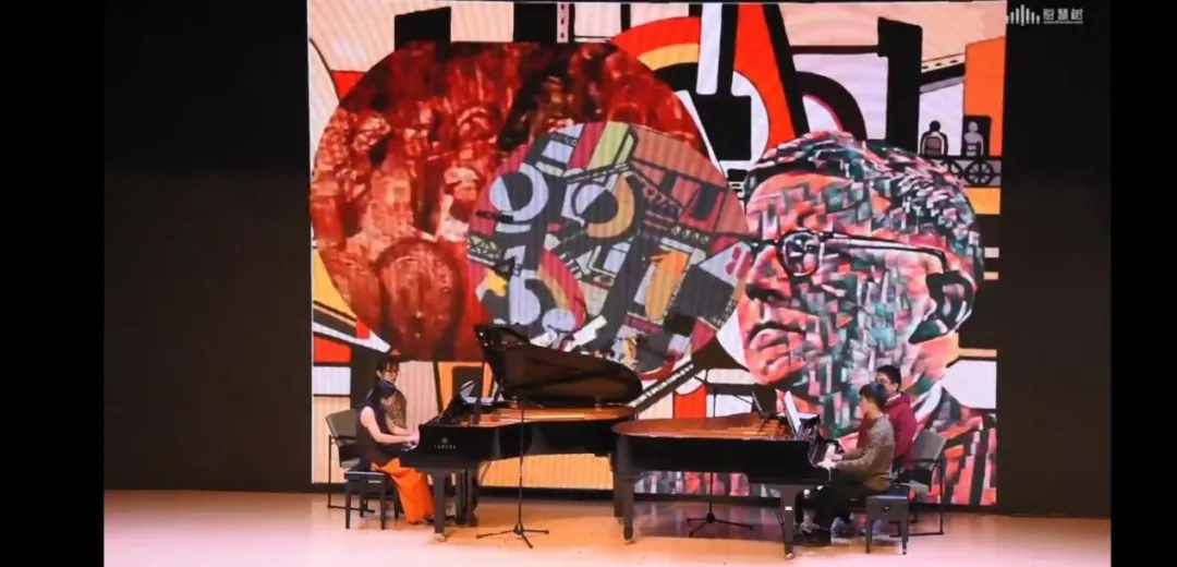 最后一首肖斯塔科维奇的《双钢琴小协奏曲》由隋歆老师和叶尚松老师搭档出演,这首乐曲呈现出了完美的强烈对比,时而节奏飞快、时而抒情,两位老师的默契配合为本次“云”端音乐会画上了圆满句号。在音乐会最后朱永宁老师和隋歆老师还专门以视频形式为在线听众送来了专属祝福,再度诠释了本次音乐会的主题,表达了对疫情早日结束同学们能返校相聚的期待。