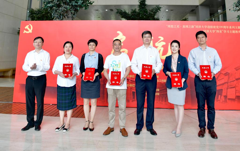 徐明、尤玮、童科,以及我校马克思主义学院徐蓉教授、张劲教授、李雅茹副教授,受聘为同济大学“四史”教育专家团专家,方守恩为他们颁发了聘书。