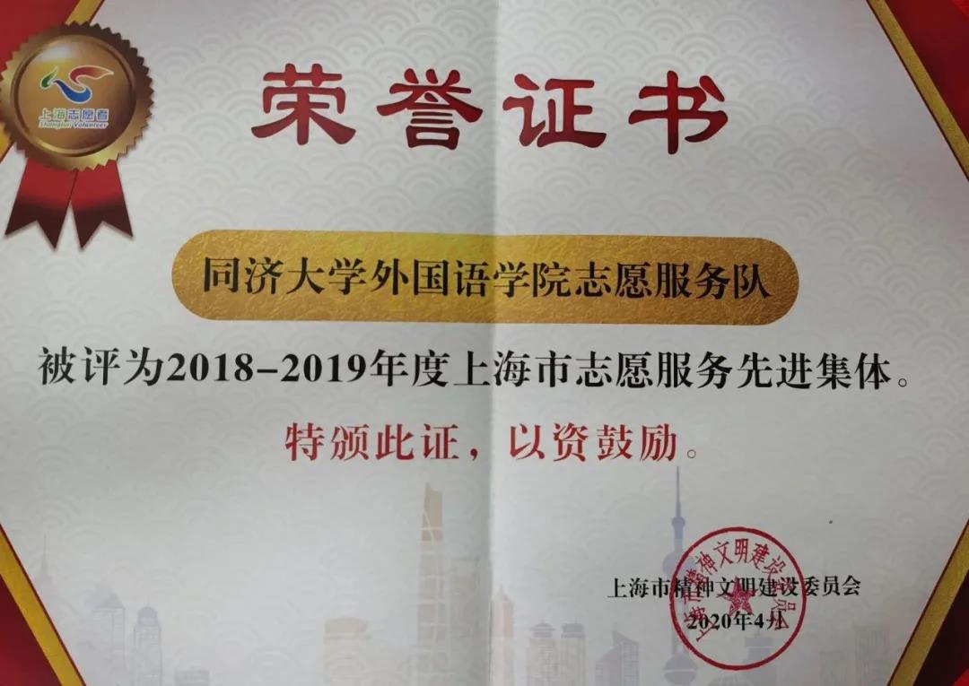同济大学外国语学院志愿服务队被评为上海市志愿服务先进集体