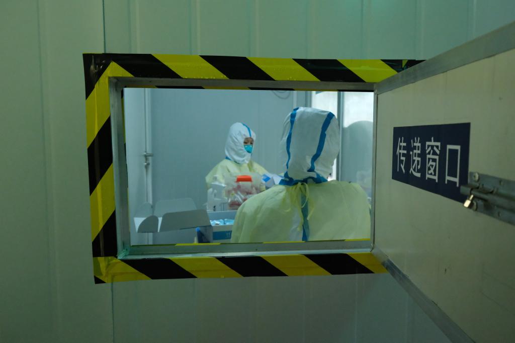 每个采样工作站里都有三个小间,分别为医护入口、采样间、医护出口,采样窗口边设置传递窗口,清洁与污染区严格划分,杜绝院内感染的发生。(文/孙钰 图/戴文仪)