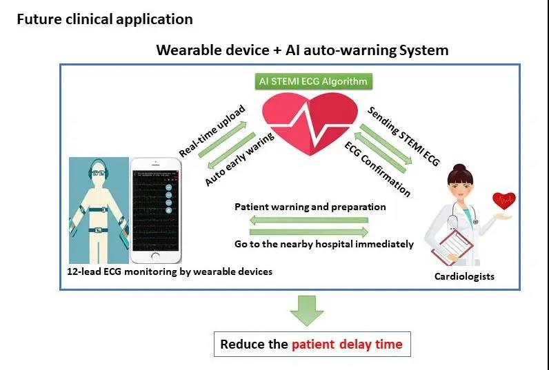 由人工智能算法对患者急性ST段抬高型心肌梗死心电图进行判读,相比心血管医生更为精准、优势更为明显,从而能实现对急性ST段抬高型心肌梗死的自动预警。未来可将该算法嵌入可穿戴心电监测设备,实现急性心肌梗死的院前预警。