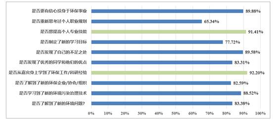 活动通过视频回顾、代表发言、有奖答题、互动提问等形式,全面回顾了“校-企-协云端实习”内容。学生通过现场连线、有奖答题等多种形式参与互动。问卷反馈显示,92.20%的学生表示,从嘉宾身上学到了环保工作和科研经验;89.88%的学生表示,更有信心投身于环保事业。老师们则表示,课程思政很好地融入到了环境与生态专业课中。