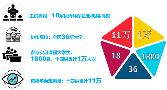 组织者介绍,云端实习系列讲座共邀请到环保企业、机构及高校的18位主讲嘉宾。他们从我国环保产业的发展历程、环境污染处理技术的发展以及环保工程师的责任感等多方面,为全国环境学科36所高校、共计1800名同学带来了15场环境生态思政实习大课。讲座通过中国大学MOOC、Zoom及bilibili多平台进行直播和实时转播,ZOOM平台累计1万余人次在线学习,bilibili平台累计观看峰值达11万。