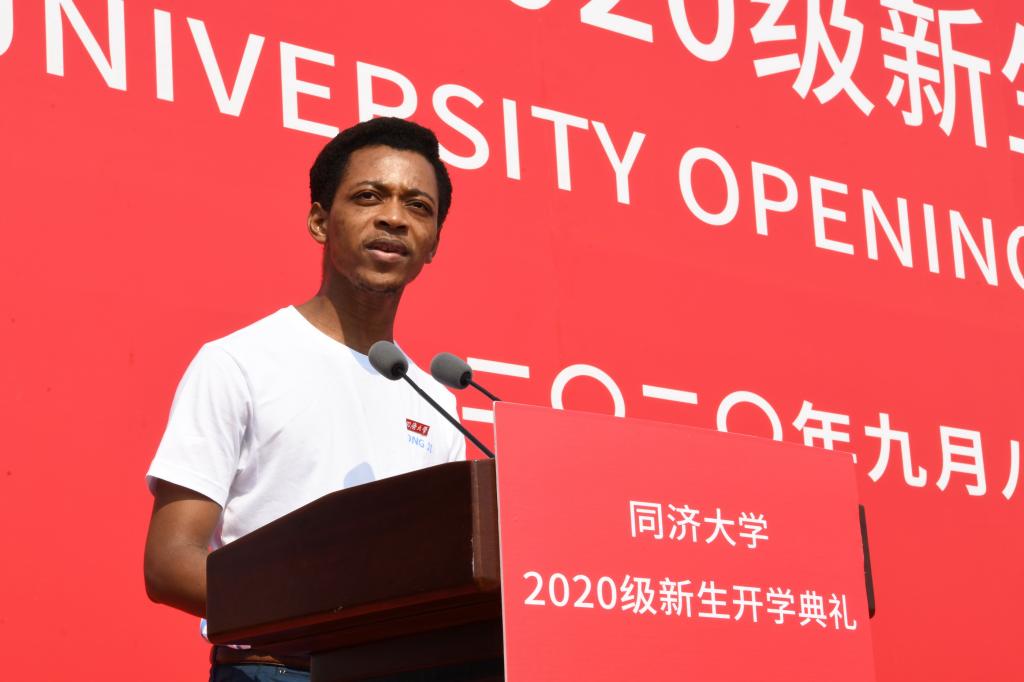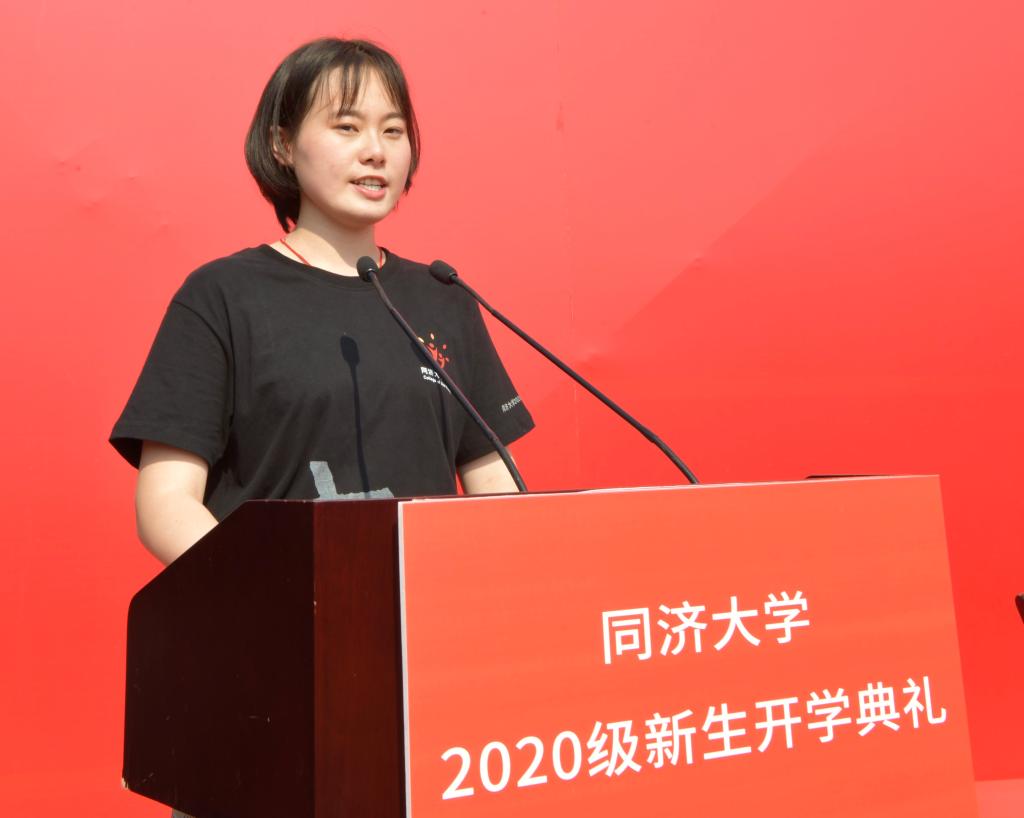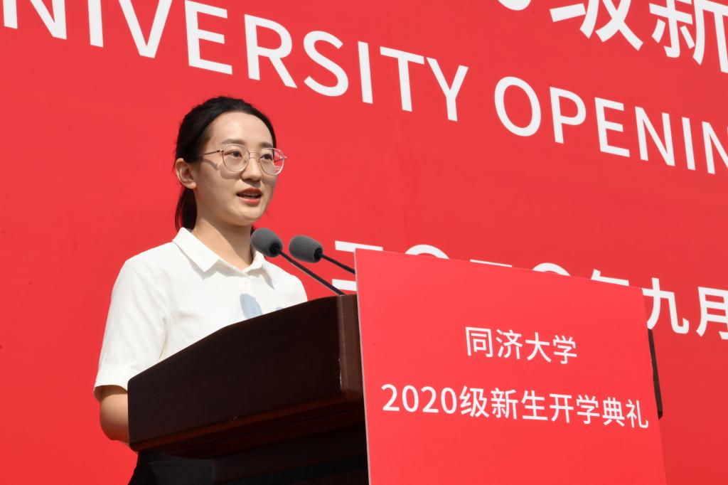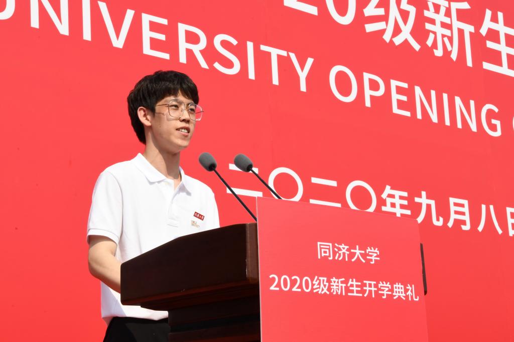 同济大学2020年本科优秀新生奖学金获得者、新生院济美学堂学生杨程,电子与信息工程学院2020级硕士研究生卢彬钰作为新生代表发言,医学院2020级本科生阿敏多作为国际生新生代表发言,共同表达了在同济开启人生新征程的决心和信心。