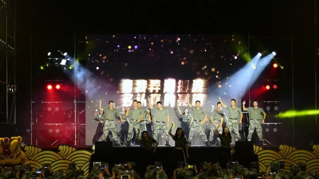 在嘉定校区足球场上,同济大学学生街舞协会C4family用原创舞蹈《凯旋》向军人致敬。全场同学挥动手中的国旗和手机闪光灯,在一片“红海”和“星空”中高声合唱《我爱你中国》。退伍大学生教官们也登台“献宝”,为新生们带来了精彩舞蹈《Yes!Ok!》。晚会最终以千人合唱的《强军战歌》将全场气氛推向高潮。