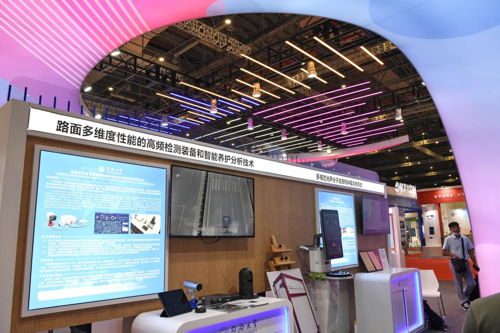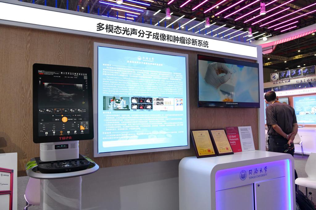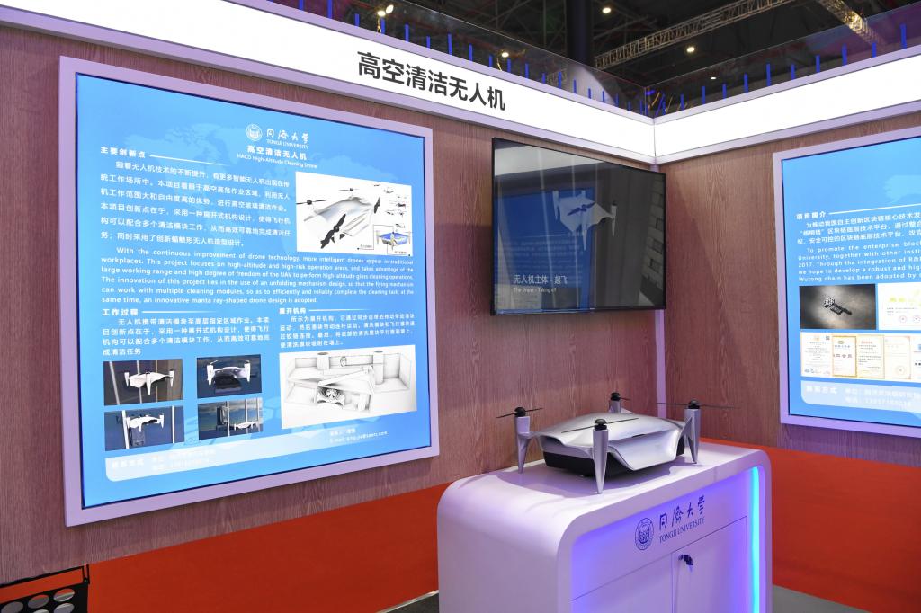 这次参展,同济传统理工学科当仁不让,带来了众多颜值高、性能强的产品。电子与信息工程学院刘儿兀的“通导一体”定位导航一体引擎,已经燃爆了多个大型展会、赛场,这次也来了;电信学院马小峰的“梧桐链”为金融打造了一个安全便捷的“家”,物理学院程茜的肿瘤诊断仪器不但看得清、看得准,还能做判断,医生凭借它就可药(术)到病除,患者因为它少受很多罪。