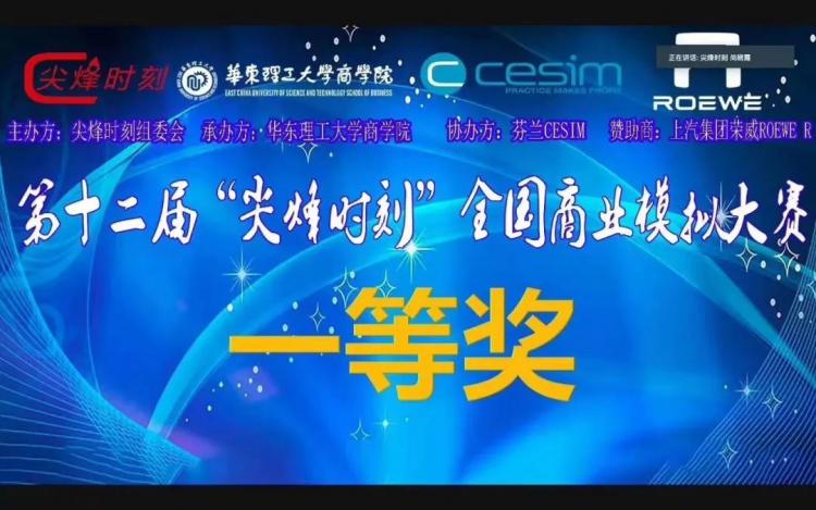 同济MBA学子获“尖烽时刻”全国商业模拟大赛全国一等奖